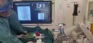 OA Kupfertaler, Leiter der Diagnostischen und Interventionellen Radiologie am Ordensklinikum Linz und OA Nöbauer, Standortleitung Diagnostische und interventionelle Radiologie Barmherzige Brüder nehmen in der Angiographie eine Thrombektomie vor.