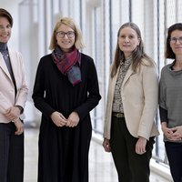 Foto 1: Die Podiumsteilnehmerinnen v. l.: Priv.-Doz.in Dr.in Kathrin Strasser-Weippl (Medizinische Leiterin des Tumorzentrum OÖ), LH-Stv.in Mag.a Christine Haberlander (Gesundheitslandesrätin), Prim.a Priv.-Doz.in Dr.in Sonja Heibl (Stv. Medizinische Leiterin des Tumorzentrum OÖ, Leiterin Innere Medizin IV im Klinikum Wels-Grieskirchen), Prim.a Dr.in Daniela Gattringer (Leiterin Physikalische Medizin und Remobilisation am Ordensklinikum Linz Barmherzige Schwestern)